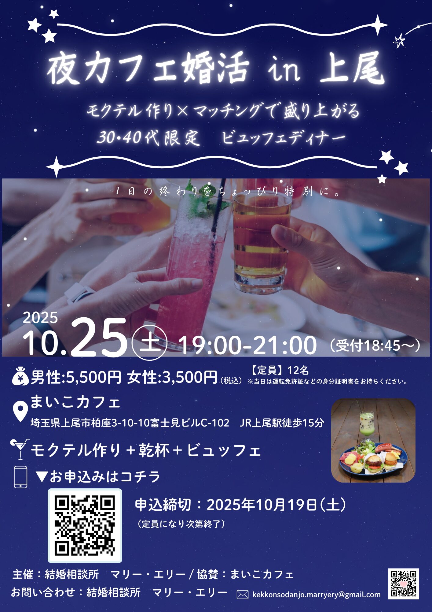 - 夜の部:19:00〜21:00(モクテル作り婚活)