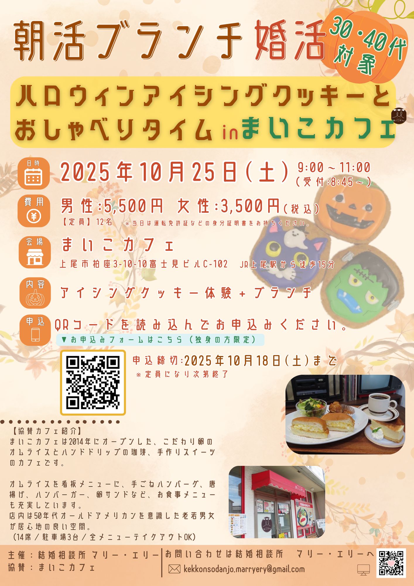 - 午前の部:9:00〜11:00(アイシングクッキー婚活)